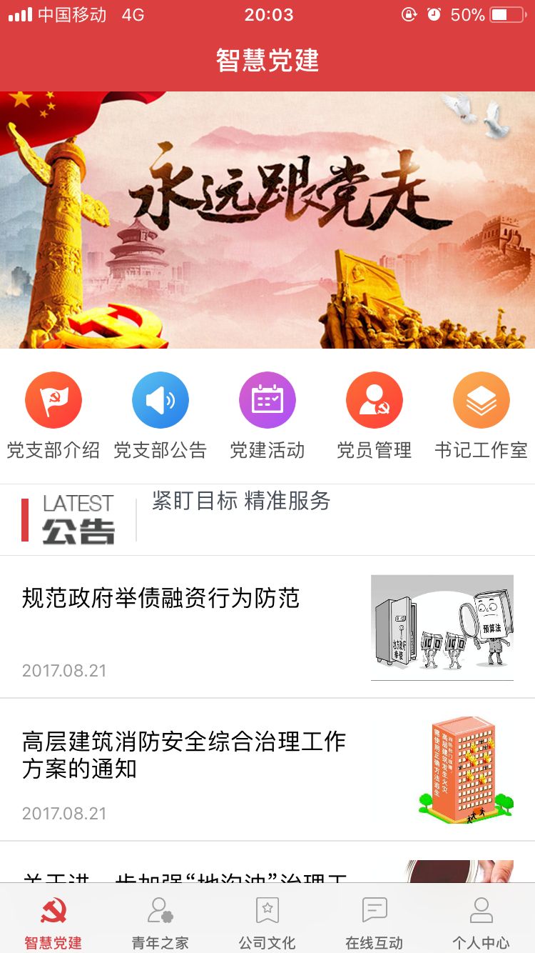 路通視信積極向黨組織靠攏,利用自身優(yōu)勢,對黨建工作的改革創(chuàng)新進(jìn)行了深入的研究,已與多個黨組織合作,進(jìn)行了多次互聯(lián)網(wǎng)與黨建工作相融合的實踐,如有需要可點擊在線咨詢,或是撥打400-666-1947進(jìn)行咨詢。