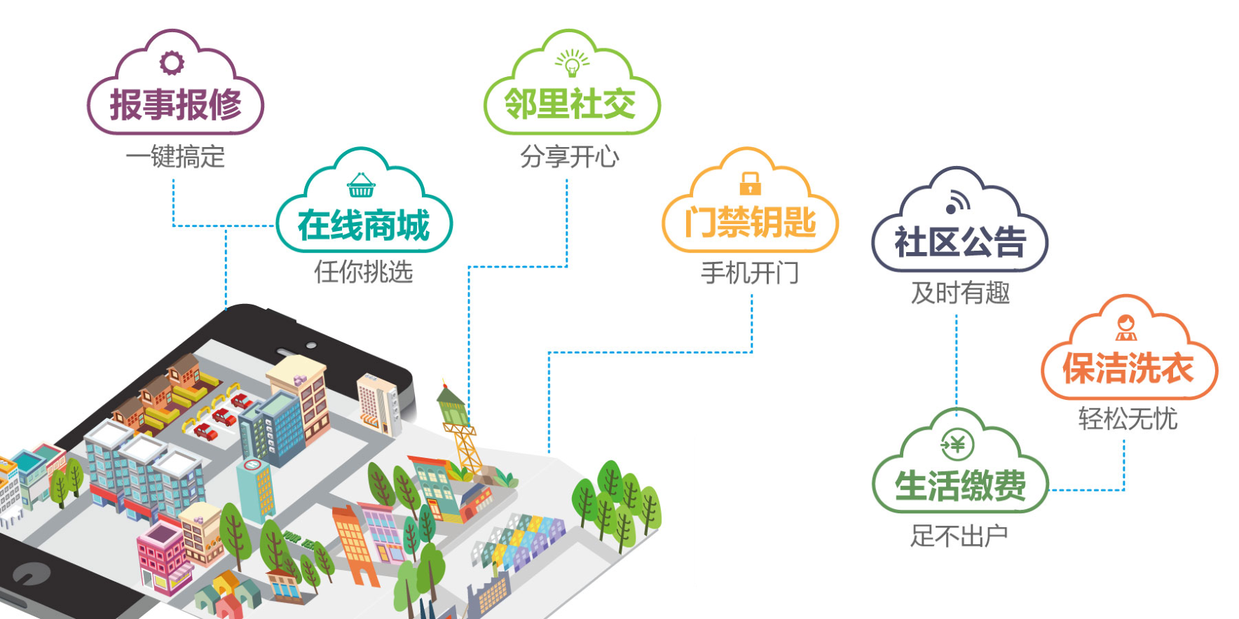 通過“平臺+硬件+運(yùn)營”的軟硬件相結(jié)合理念,涵蓋到社區(qū)生活的方方面面,大到社區(qū)門禁、社區(qū)監(jiān)控、社區(qū)通訊等,小到家居設(shè)備、安全警報、居家醫(yī)療設(shè)備等,均可通過硬件設(shè)備將大數(shù)據(jù)收集傳輸備份至云端數(shù)據(jù)庫,通過平臺整合分析可在線監(jiān)控社區(qū)安全、接受社區(qū)需求、提供社區(qū)服務(wù)等,有效提高工作效率和業(yè)主滿意度。