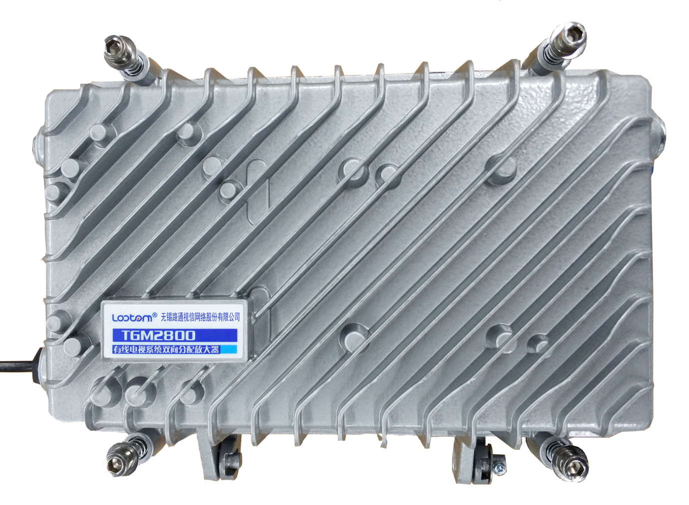Overview        TGM2800D bi-directional amplifier adopts imported GaAs module amplification. It can be used in CATV network, digital network and telecom network with high gain, low distortion and excellent flatness. It can be used as an amplifier or a distribution amplifier in bidirectional CATV system. Each port has independent bidirectional filter facilitates network test. Features         Input stage adopt imported CATV head-end amplifier modules, input and output stage adopt imported CATV exclusive power multiplier amplifier module, greatly improved the nonlinear distortion characteristics, RF output level is up to 108dBuV
